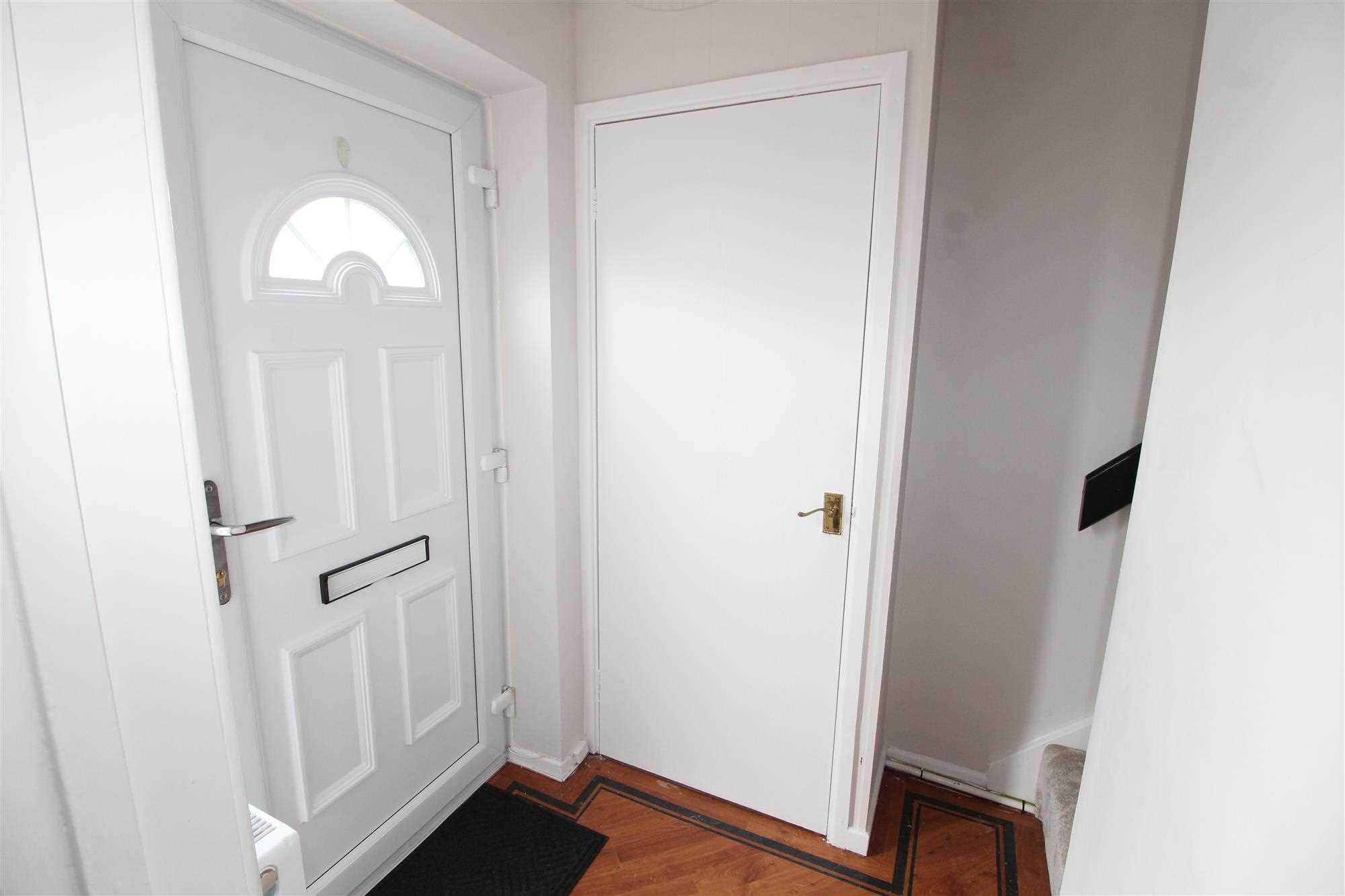 Upvc entrance door, radiator, storage cupboard, stairs to first floor and Karndean flooring.