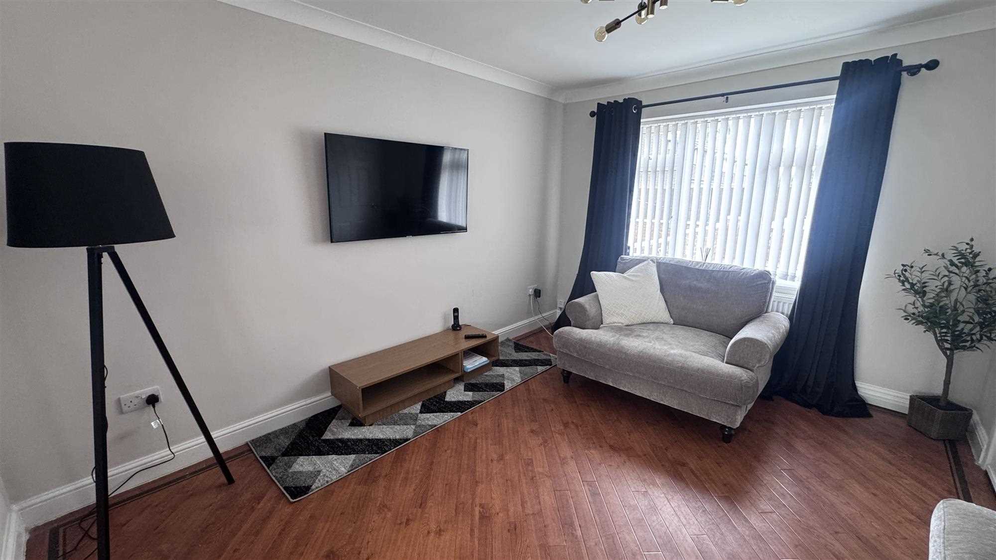 Upvc window to the front of the property, open arch to the dining room, radiator and Karndean flooring.