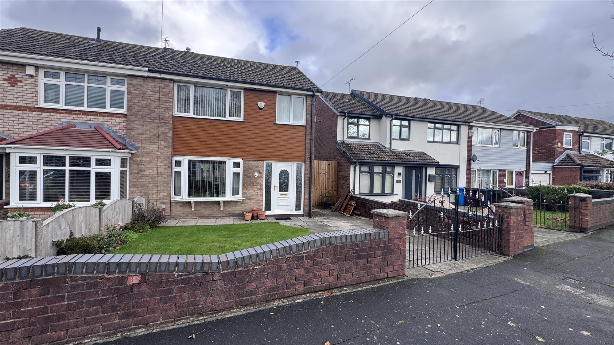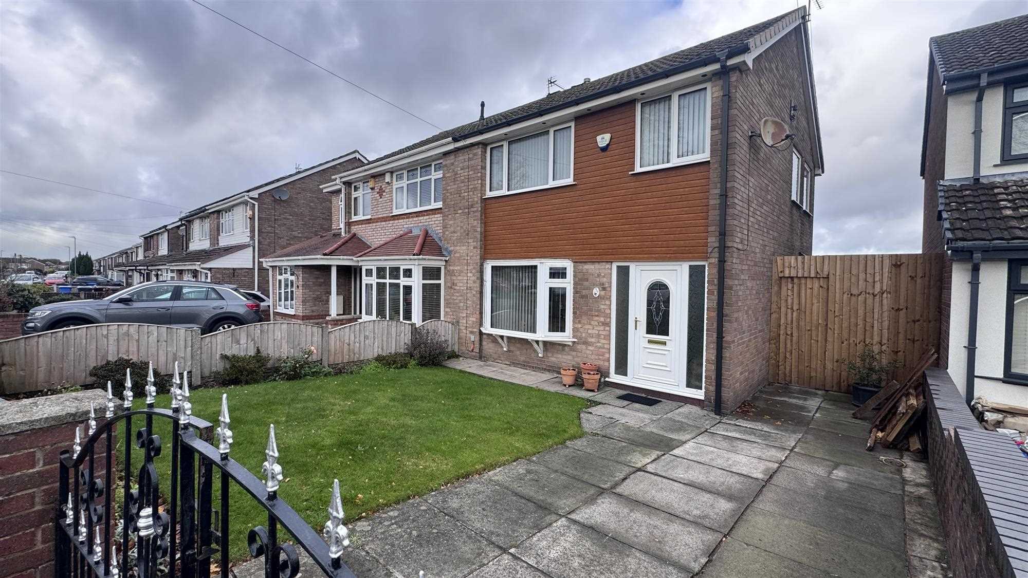 Brick boundaries with double metal gates, lawned area and paved off-road parking, Plenty of room for a side extension.