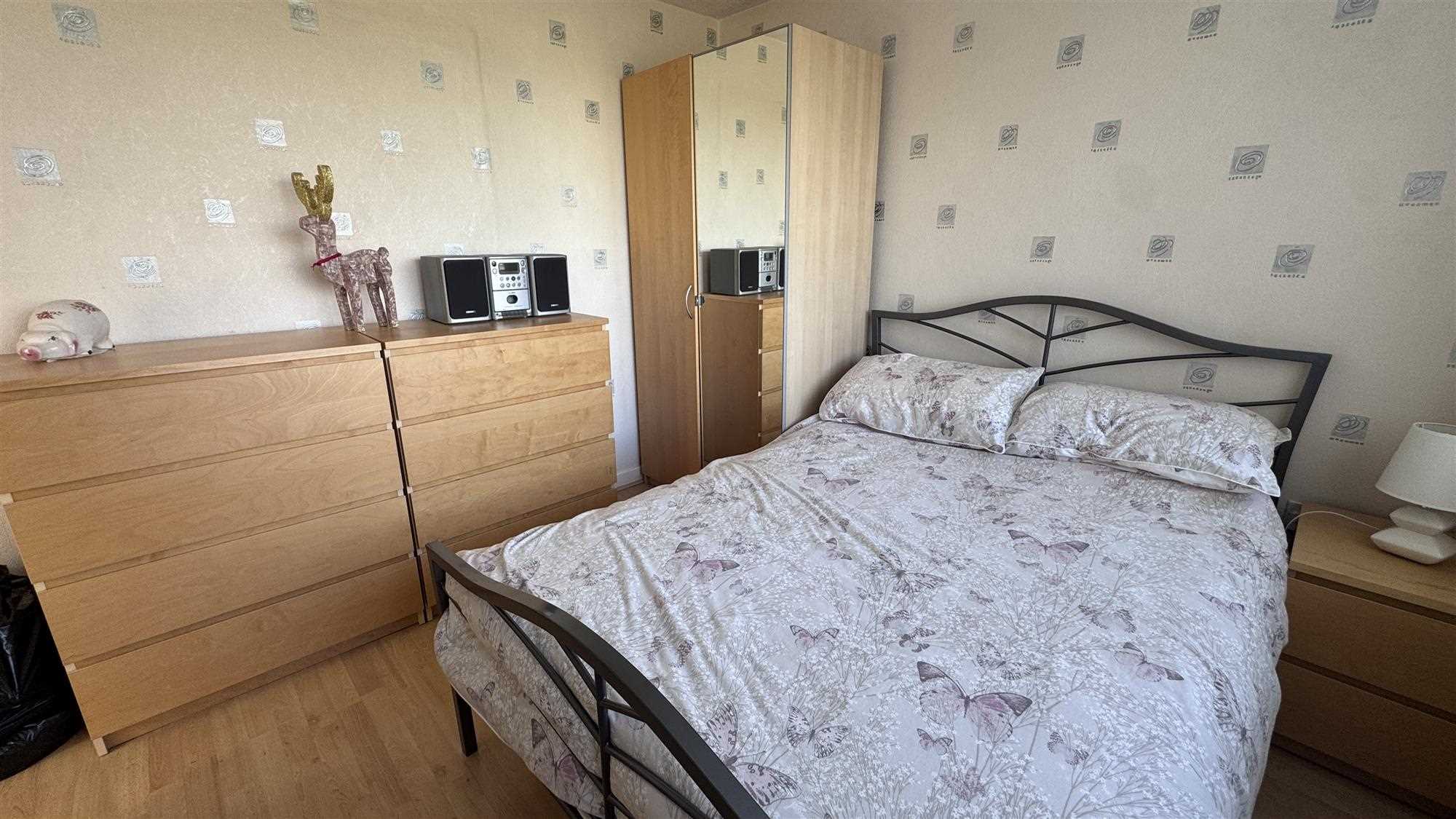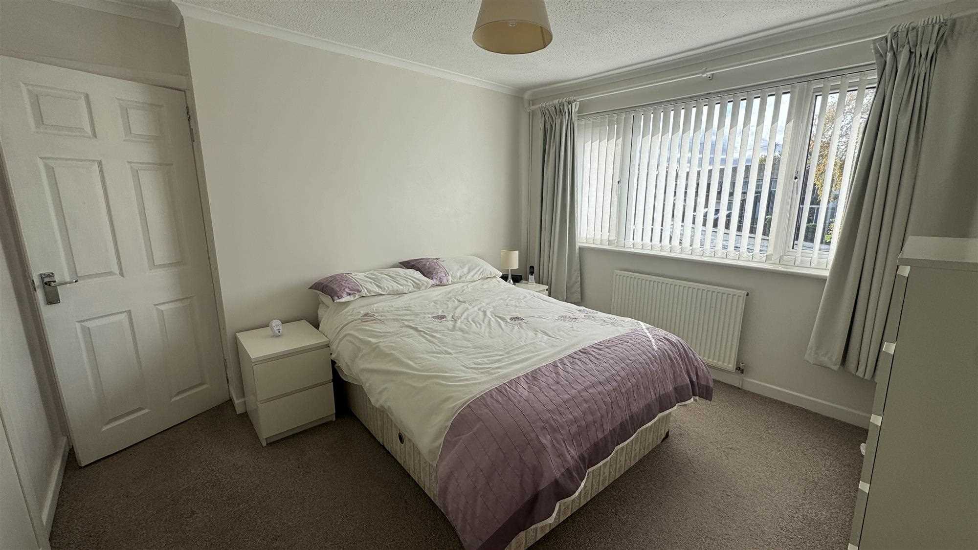 Upvc window to the front of the property, radiator, built-in wardrobes and carpeted flooring.
