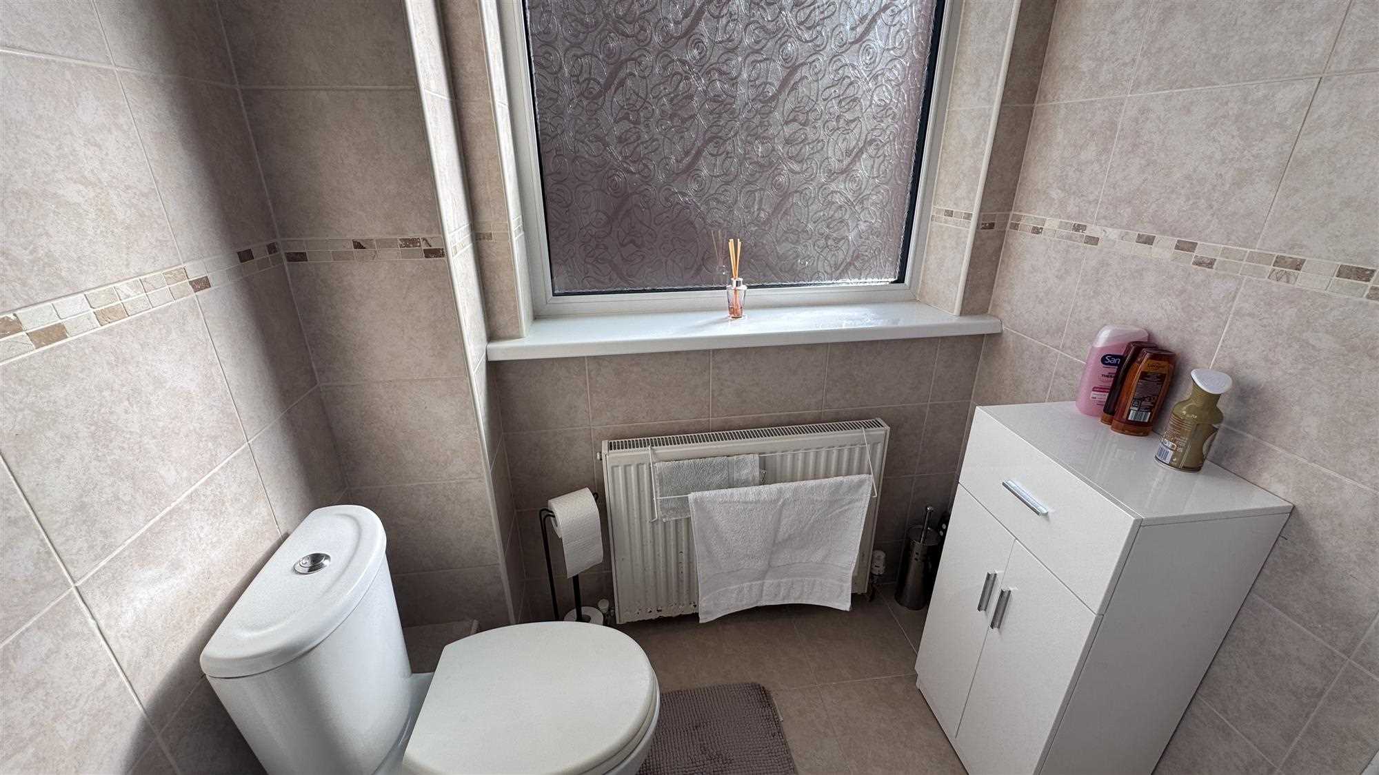 Upvc windows to the front and side of the property, panelled bath with overhead shower and screen, low level Wc and pedestalled wash basin, radiator and ceramic flooring.