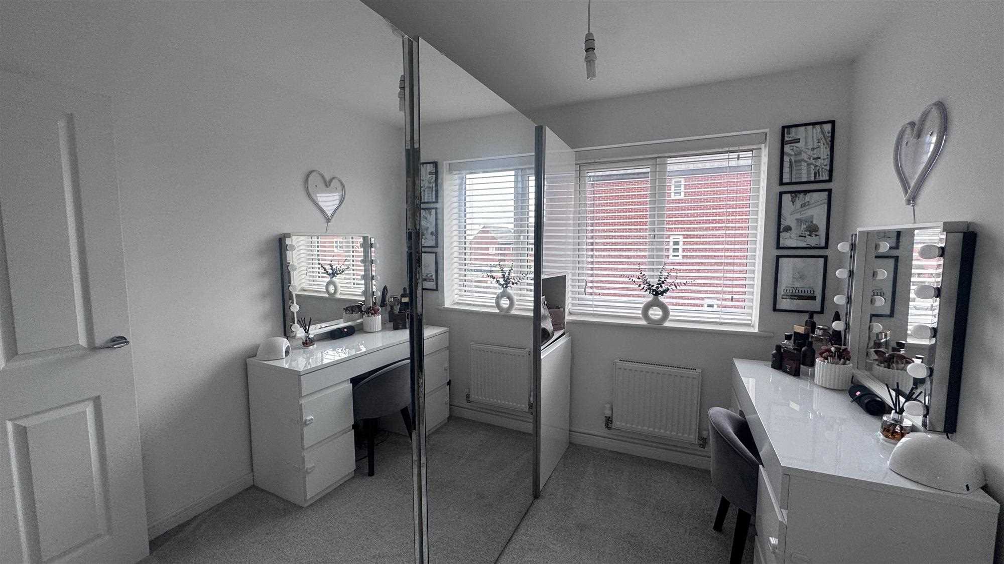 Upvc window to the rear of the property, radiator and carpeted flooring.
