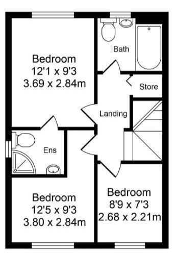 Bedroom 2 3.70m (12' 2") x 2.83m (9' 3")