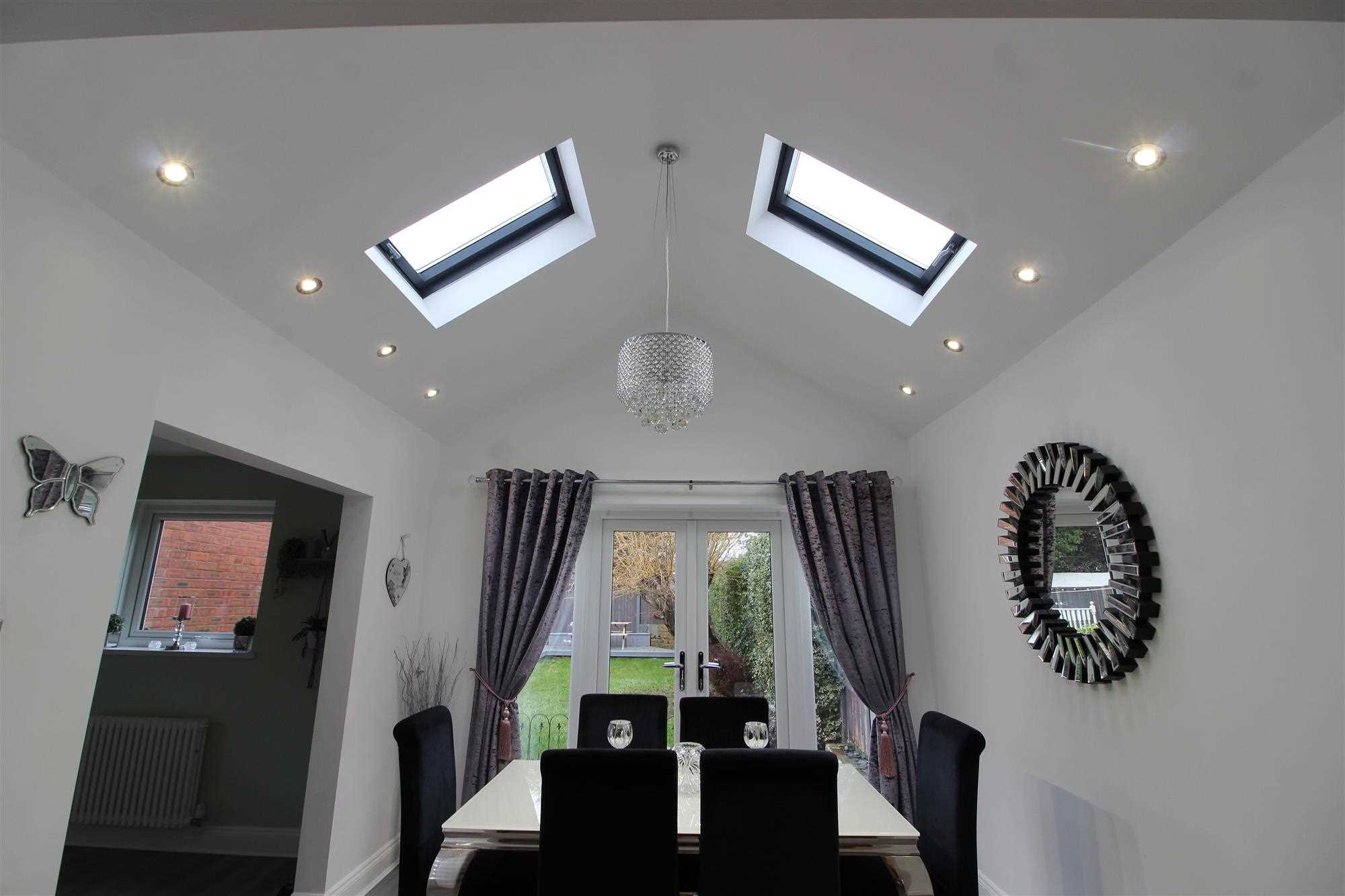 Upvc French doors to the rear garden, radiator, vaulted ceiling with velux style windows and laminate flooring.