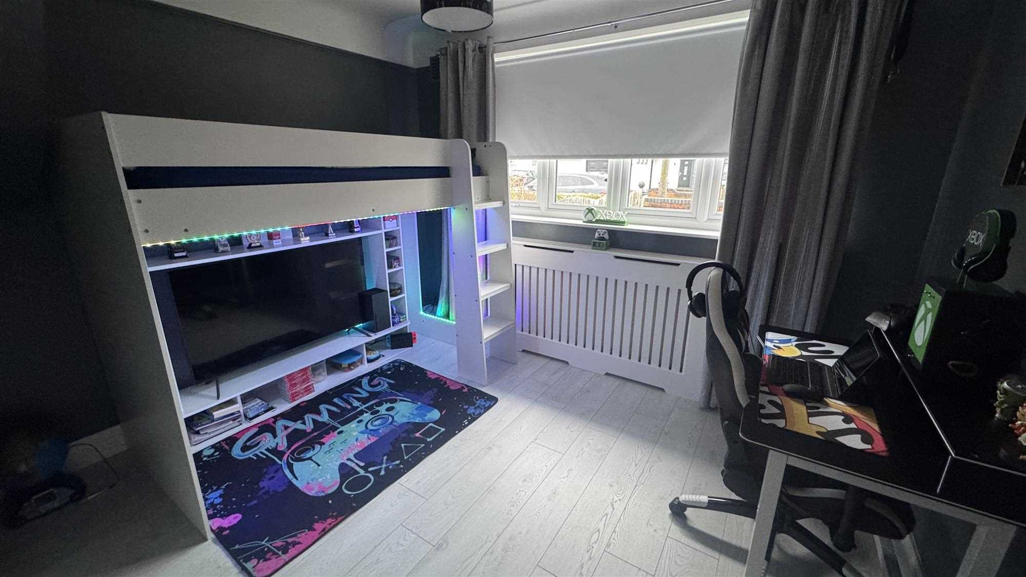 Upvc window to the front of the property, radiator and laminate flooring.