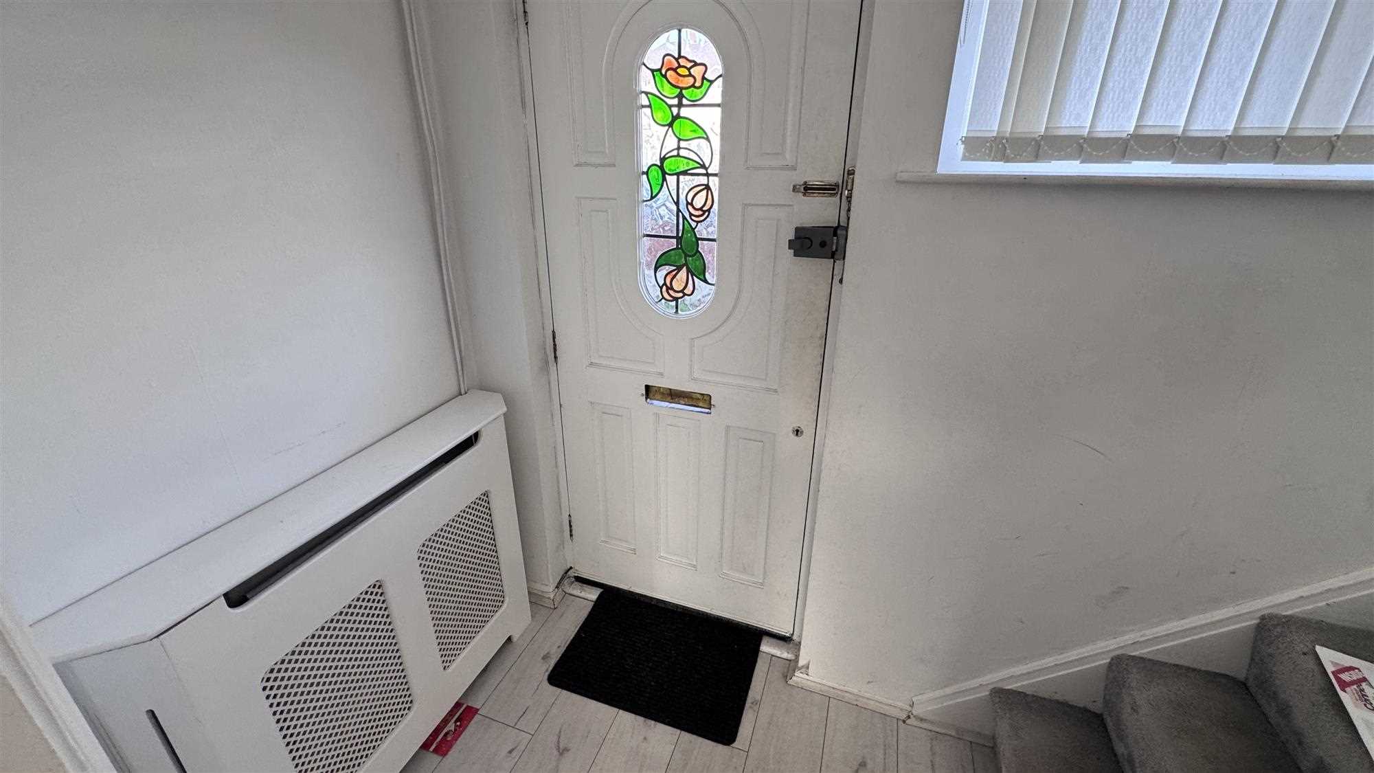 Entrance door, radiator, stairs to first floor, laminate flooring.